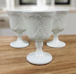 Vintage Milk Glass Grape Pattern Pedestal Goblets Set of 3 White$38Fort Lauderdale, FL