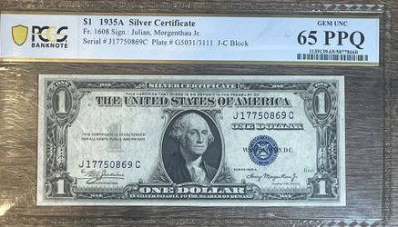 PCGS Top POP - 1935A $1 Silver certificate - PCGS 65 PPQ - GEM UNC$220Los Angeles, CA