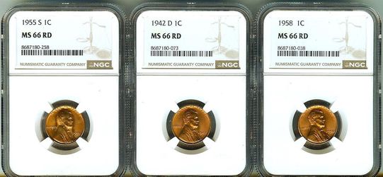 1942-D 1955-S 1958 Cent NGC MS66 RD$110Los Angeles, CA