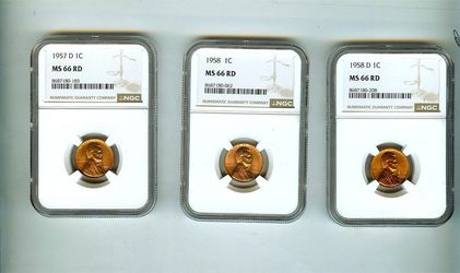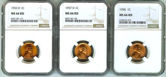 1953-D 1957-D 1958 Cent NGC MS66 RD 3 coins lot$95Los Angeles, CA