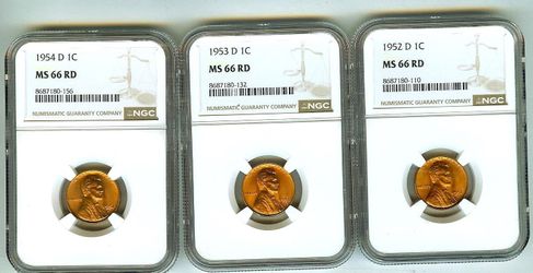 1952-D 1953-D 1954-D Cent NGC MS66 RD$95Los Angeles, CA