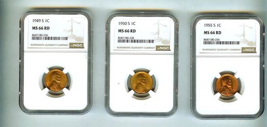 1949-S 1950-S 1955-S Cent NGC MS66 RD - 3 coin lot$125Los Angeles, CA