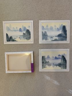 3 canvas paintings (9 x 12 inch) , depicting traditional beautiful picturistic Chinese landscapes, mohills, lake and Sampans$20Katy, TX