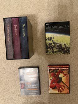 Movie DVDs. 1. Lord Of The Rings Complete Set, 2. Planet Earth BBC Complete Series 5 Discs, 3. BEE GEES 2 DVD Set One Night Only, 4. Spider Man DVD $10Houston, TX