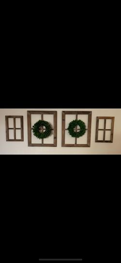 Wooden Windows And Boxwood Wreaths Decoration $110Tempe, AZ