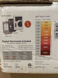 Cadet Energy Plus Wall Heater Complete Unit With Built-in Digital Thermostat (Model: CEC163TW$100North Caldwell, NJ