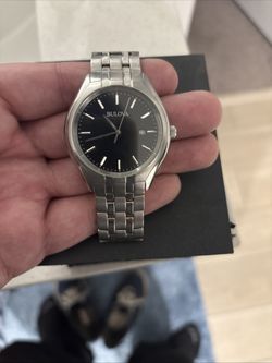 The Bulova Classic Men's Watch, model 96B265, stainless steel with a black dial.$150Beaumont, CA