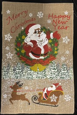 Merry Christmas Happy New Year Burlap Garden Flag, 13x 21 Inch Decorative Christmas garden Yard Flag SET OF TWO $8West Palm Beach, FL