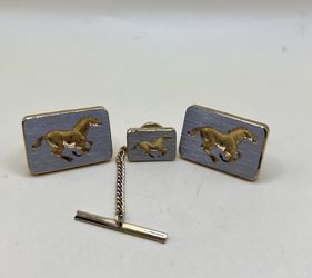 Set Of Three Vtg Dante Horse Cufflinks and Tie Tack Set Matching Cuff Links MCM $35Burbank, CA