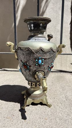 Antique Samovar Silver Filigree Turquoises Nature Gemstones Brass Base$500Burbank, CA