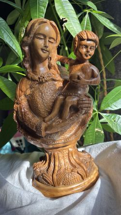 Vtg Solid Olive Wood Handcarved Virgin Mary Bust Holding Baby Jesus Statue$200Burbank, CA