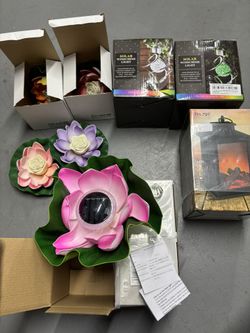 2 Solar Wind Chimes, 1 Lamp, 4 New Solar Floating Pond Lotus & 4 Used Ones$30Santa Clarita, CA