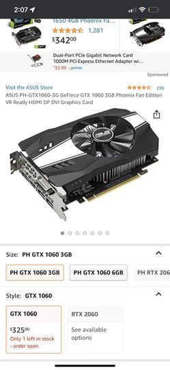 ASUS PH-GTX1060-3G GeForce GTX 1060 3GB Phoenix Fan Edition VR Ready HDMI DP DVI Graphics Card$300Lincoln, RI