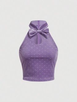 SHEIN Shine MOD Allover Print Cut Out Bow Front Halter Top$9Oakland, CA