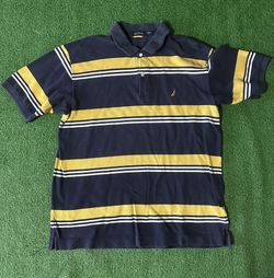 Navy and yellow striped Nautica polo shirt size L$12Hialeah Gardens, FL