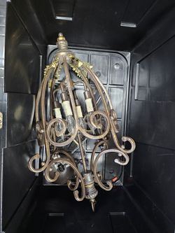 Pendant Chanedlier Six Light Open Frame Foyer Hall Fixture Burnished gold finish. Vintage$100Heathrow, FL