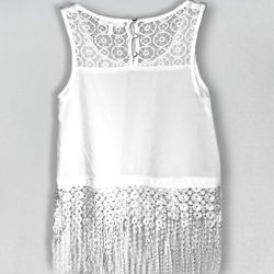 White Boho Fringe Sheer Lace Tank Top | Monteau Los Angeles® - Women’s Size XS$5Plant City, FL