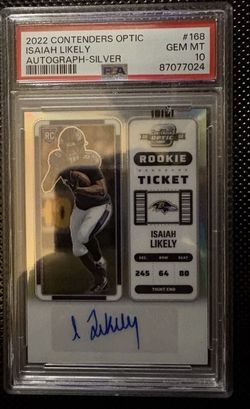 Isaiah Likely CONTENDERS OPTIC AUTO Silver PSA 10 Baltimore ravens ROOKIE TICKET (available on E ( BAY)$102Eldersburg, MD