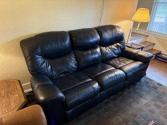 Comfortable Reclining Sofa – 3 Seat - Dark Blue, Both Recliners Work (Can Deliver)$200Seattle, WA