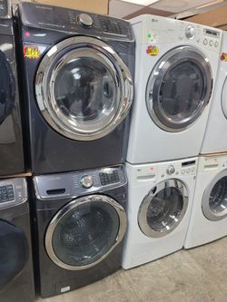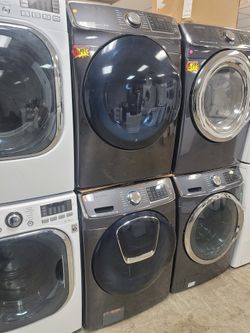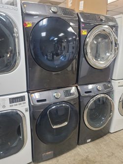 Samsung Large Capacity 5.0cu Ft Front Load Washer And Stackable Gas Dryer Set In Black Stainless $799Lancaster, CA