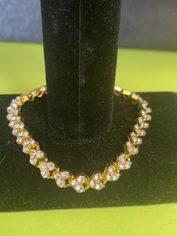 Bracelet, Gold Plated With White Crystal Hearts$25Holiday, FL