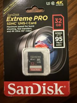 SanDisk Extreme Pro 4K 32GB 95MB/s SDHC UHS-I Card$25Mission Viejo, CA