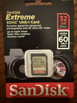 SanDisk Extreme SDHC UHS-I 32GB 60MB/s Memory Card$20Mission Viejo, CA