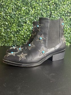 VALENTINO Garavani black leather turquoise blue stone studded ankle boots Sz 38$150Glendale, AZ