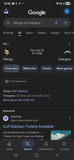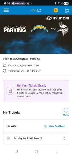 Chargers Vs Vikings With Tailgate Parking $550Hesperia, CA