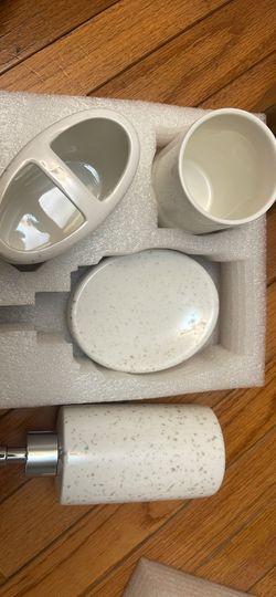 Ceramic Bathroom Accessory Set, 4 Piece Bathroom Accessory Set, Soap Dish, Toothbrush Holder, Soap Dispenser, Bathroom Tumbler & Candle Holder - Moder$10Cherry Hill, NJ