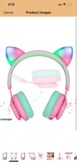 Riwbox CT-7 Cat Ear Bluetooth Headphones, LED Light Up Bluetooth Wireless Over Ear Headphones with Microphone and Volume Control for Travel/School/Sma$15Cherry Hill, NJ