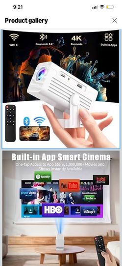 Mini Projector with WiFi and Bluetooth, 1080P Supported Smart Projector with Built in Apps, Outdoor Movie Projector 150" Display, Auto Keystone,Short $25Cherry Hill, NJ