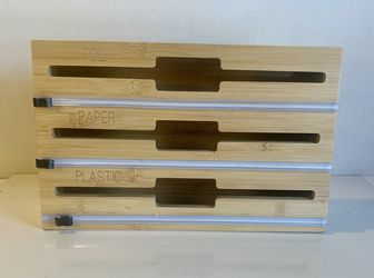 3-in-1 bamboo wrap dispenser. This dispenser neatly stores foil, paper, and plastic wraps,$15El Cajon, CA