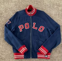POLO RALPH LAUREN Collegiate Sweater Zip Up Cardigan Size M Navy Blue Red White$185Glmn Hot Spgs, CA