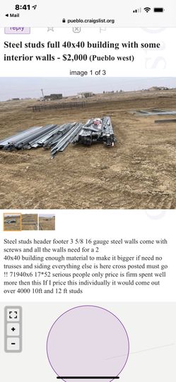 40x40 Plus Extra Walls Steel Studs 5 3/8 16 Gauge With 10 And 12 Ft Walls With All Screws U Need$2,000Pueblo West, CO