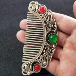 Silver-inlaid gemstone comb, vintage-style pipa comb, silver-plated white brass comb$38Queens, NY