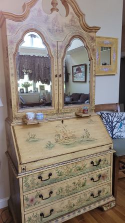 Asian Hand-painted Desk Armoire And Matching Mirror$200Columbia, MD