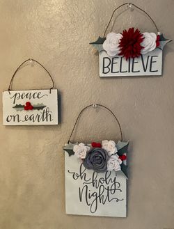 Wooden Ornaments With Calligraphy & Felt Flowers - Set Of 3$5Turlock, CA