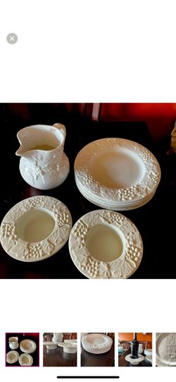 White Ceramic Wine Grape Embossed Dinner Setting $45Covina, CA