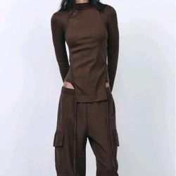 NWOT Zara Double Layer Ribbed Long Sleeve Top Brown Size S $26Redmond, WA