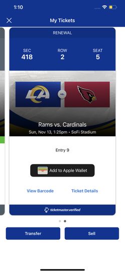 Los Angeles Rams Tickets Section 418$1Pico Rivera, CA
