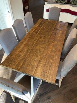 Durham Bleached Oak 87” Dining Table W/ 8 Chairs And Hutch $2,000Yorba Linda, CA