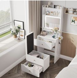 Make Up Vanity Desk with Mirror and Lights, White Vanity Table Set with Charger Station, Small Vanity and Storage Chair$150Pearl City, HI