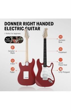 Donner 39-Inch Electric Guitar Starter Kit with Solid Body, HSS Pickup, Accessories, Amplifier, Lessons, and Digital Tuner - Red New with tags origin$139Irvine, CA