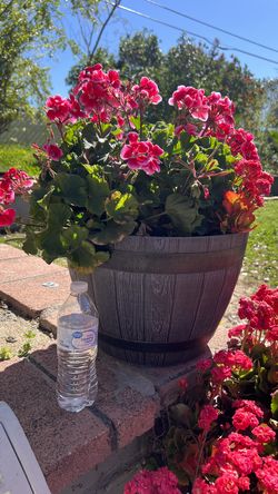 Flower pot with pink geraniums$65Moreno Valley, CA