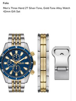 NEW Folio Men's Three Hand 2T Silver-Tone, Gold-Tone Alloy Watch$44Costa Mesa, CA