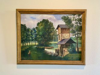 Original Antique Country Oil Painting and Frame Waterscape Fishing Farm $60Murrieta, CA