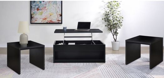LIFT TOP TAIL COFFEE TABLE WITH DUAL DRAWERS AND 2 END TABLES BLACK (CO) $499 free local delivery $499Riverside, CA