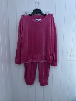Valentine’s Day Outfit M Magaschoni top Jogger pant Set women L pink rhinestone heart velour$35Glastonbury, CT