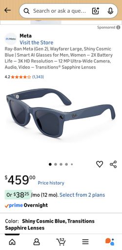 BRAND NEW - RayBan Meta Gen 2 Glasses - Shiny Cosmic BLUE, Transitions Sapphire Lenses $400Riverside County, CA